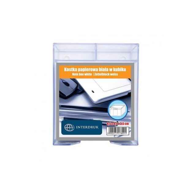 Kostka papierowa w pojemniku Interdruk 85x85x70mm nieklejona biała